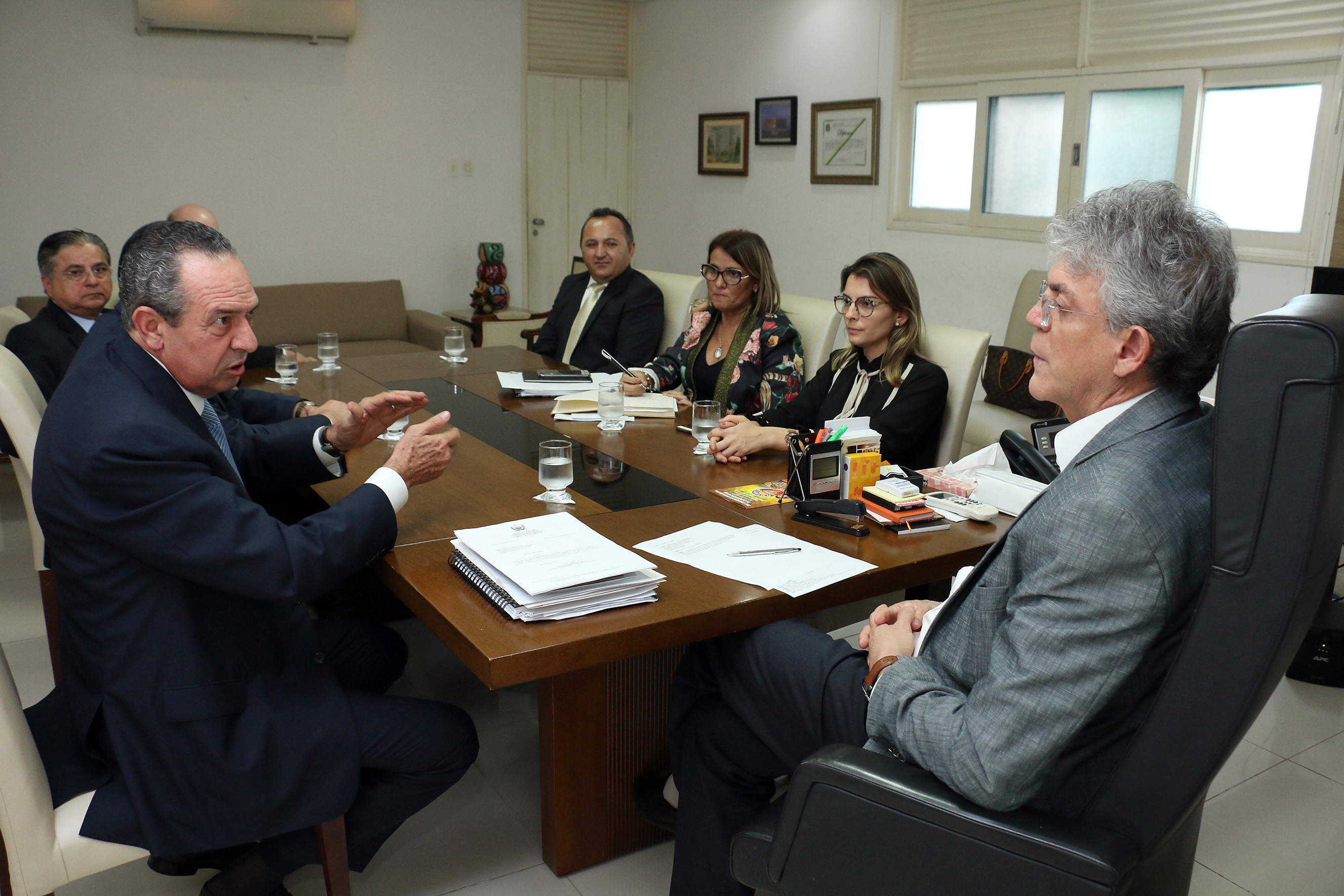 O governador Ricardo Coutinho recebeu, nesta quinta-feira (5), na Granja Santana, Josué Augusto Pancini, vice-presidente do Banco Bradesco, que venceu a licitação para gerir a folha de pagamento do funcionalismo público estadual. Na ocasião, foram reafirmados os compromissos da instituição bancária com uma melhor prestação de serviços aos servidores estaduais. Participaram ainda do encontro a secretária da Administração, Livânia Farias; a secretária das Finanças, Amanda Rodrigues; além do diretor regional do Banco do Bradesco, Francisco Aquilino Pontes; e o diretor adjunto, Aurélio Guido Pagani.