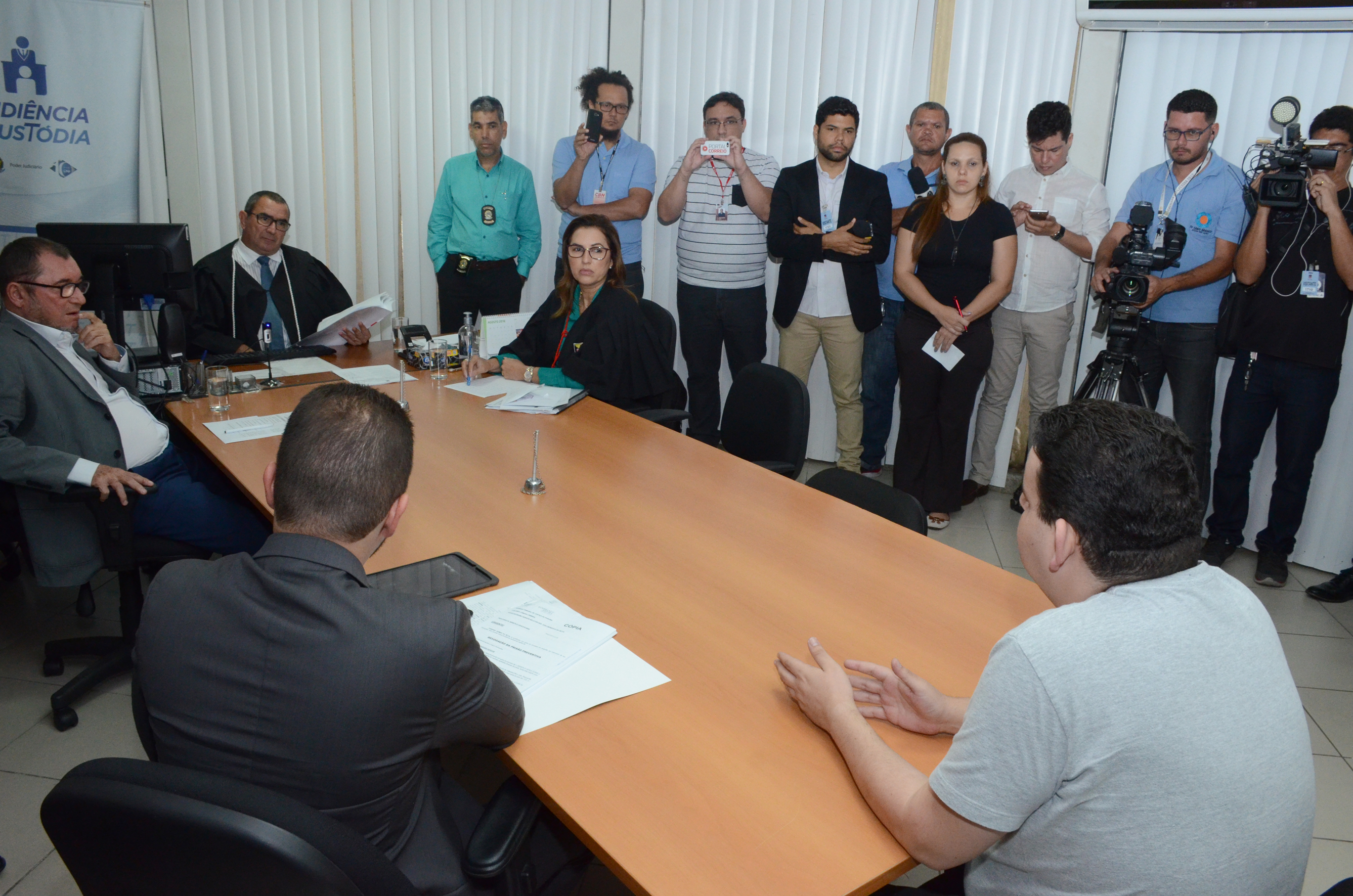 Na tarde desta quinta-feira (23), o magistrado Adilson Fabrício Gomes Filho realizou a Audiência de Custódia do radialista Fabiano Gomes da Silva, encaminhando-o para recolhimento no Presídio de Segurança Máxima PB1, em João Pessoa, para cumprimento da prisão preventiva decretada nessa quarta-feira (22). A medida foi determinada em razão de descumprimento de uma medida cautelar comparecimento periódico em Juízo, entre os dias 1º e 10 de cada mês pelo relator do processo referente à Operação Xeque-mate, desembargador João Benedito da Silva. O radialista é acusado de ter participado de esquema criminoso relacionado à compra de mandato de prefeito no Município de Cabedelo.