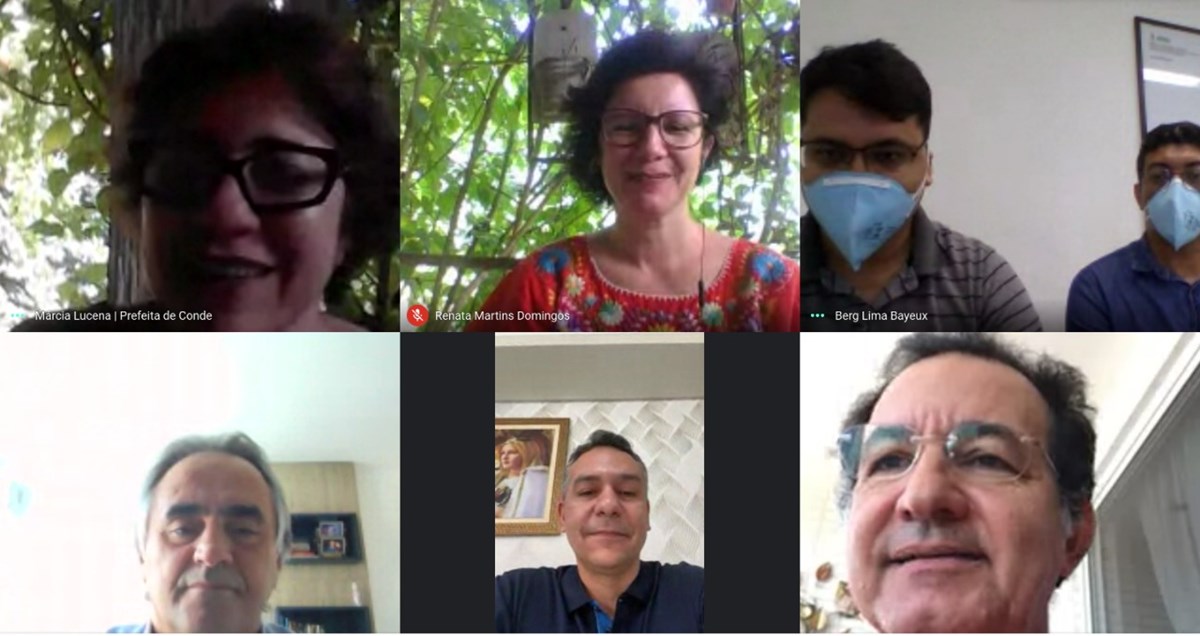 Prefeitos e secretários de saúde de quatro municípios da Grande João Pessoa participaram, neste sábado (02), de uma web-conferência para trocar experiências e traçar estratégias conjuntas no enfrentamento ao novo coronavírus. No encontro, os gestores definiram a criação de um Comitê de Crise, aberto para a participação do Governo do Estado, em que serão tratadas as medidas já adotadas por cada município, além de estudo técnico para implementação de um Consórcio da Microrregião de cunho sanitário para aquisição conjunta de equipamentos médicos, de proteção individual e testes rápidos.