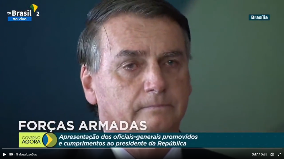 O presidente Jair Bolsonaro (PL) chorou hoje ao participar de uma cerimônia das Forças Armadas em Brasília, mas não discursou. Imagens da TV Brasil mostram o presidente emocionado e secando as lágrimas ao cumprimentar os oficiais promovidos.