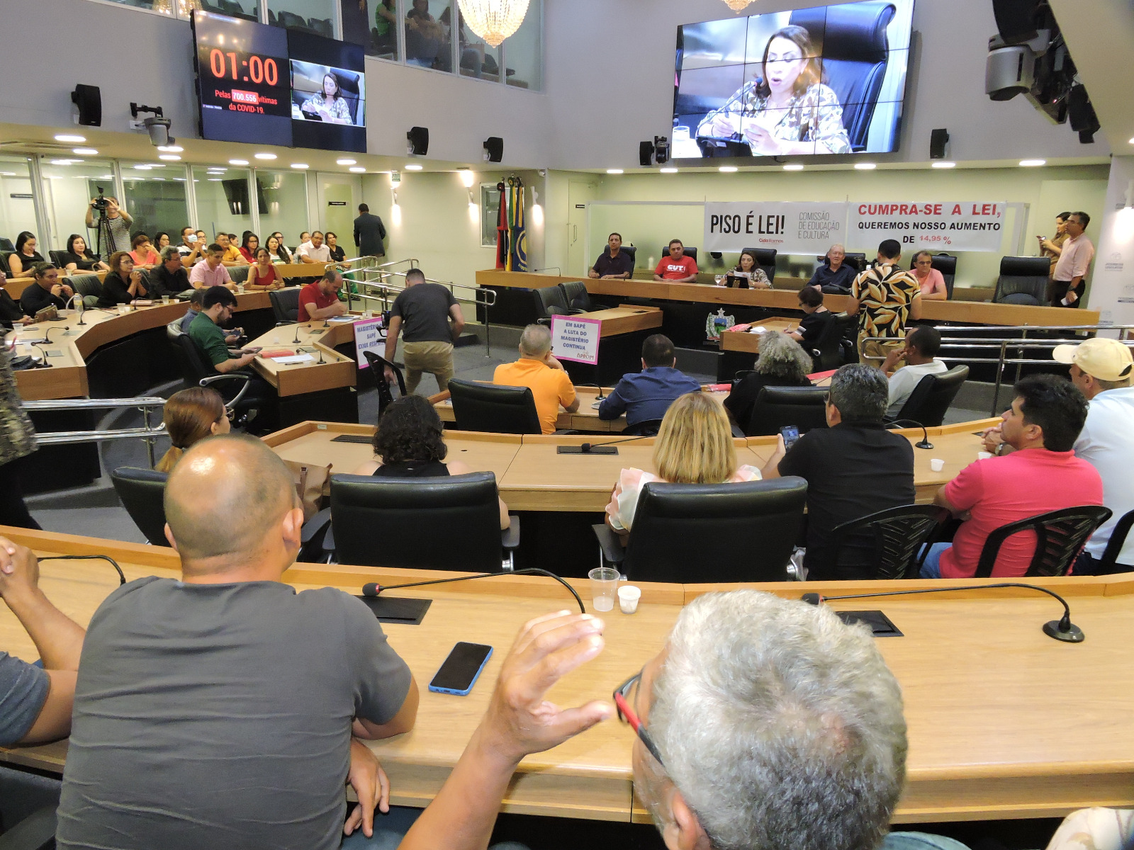 Parlamentares que integram a Comissão participaram dos debates e reiteraram apoio às reivindicações dos trabalhadores da Educação. O deputado George Morais defendeu a importância de “valorizar, estimular e impulsionar o professor a ter as condições necessárias para que ele possa dar o seu melhor em sala de aula”. Já o deputado Anderson Monteiro disse que a lei é para ser aplicada a todos e por isso deve ser cumprida. “Precisamos exercer o nosso poder de lutar na hora de lutar, dialogar na hora de dialogar e ser interlocutor na hora que for necessário, para que possamos fazer valer essa lei da melhor forma possível, para valorizar o magistério. A educação é a base de tudo”, reforçou.