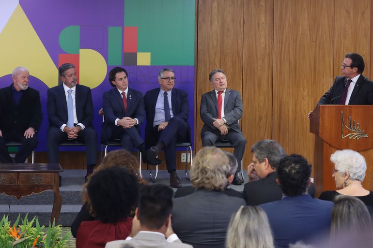 O vice-presidente do Senado, Veneziano Vital do Rêgo (MDB-PB) representou o presidente da Casa, Rodrigo Pacheco, na implementação da nova política de valorização do salário mínimo, em solenidade do presidente da República, Luiz Inácio Lula da Silva, na tarde de ontem, no Palácio do Planalto. O presidente agradeceu o apoio dos representantes do Congresso.