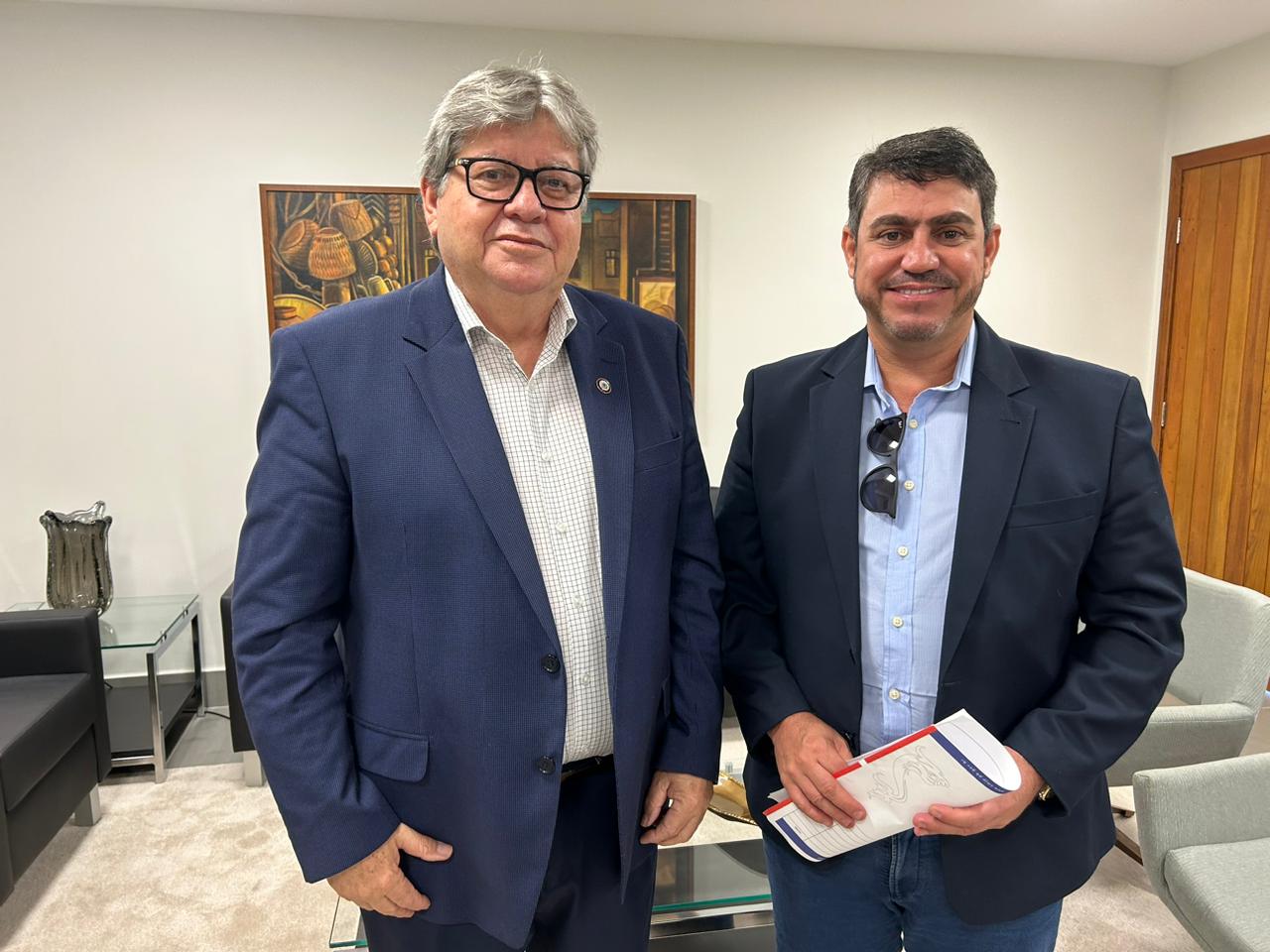 O presidente da Câmara Municipal de João Pessoa, Dinho Dowsley (Avante), participou de reunião, nesta quarta-feira (18), com o governador João Azevêdo (PSB). O encontro foi solicitado pelo parlamentar para que fosse apresentado ao mandatário um plano de ação voltado para a revitalização econômica do Centro da capital. O documento contém quatro tópicos importantes para o comércio da região.