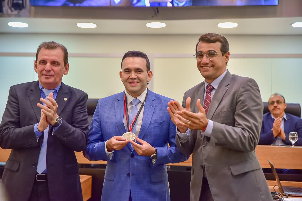 Em sessão solene, ontem, a Assembleia Legislativa da Paraíba outorgou o título de “Cidadão Paraibano”, a Medalha “Epitácio Pessoa” e o Diploma “Napoleão Laureano de Honra ao Mérito das Ciências Médicas” ao atual secretário de Saúde do Estado, Jhony Bezerrra, “pelos relevantes serviços prestados ao Estado e ao povo paraibano”. O evento, proposto pelos deputados Chió e Chico Mendes, ocorreu no Plenário Deputado José Mariz e reuniu gestores públicos, autoridades civis e militares, parlamentares, parentes e amigos do homenageado.