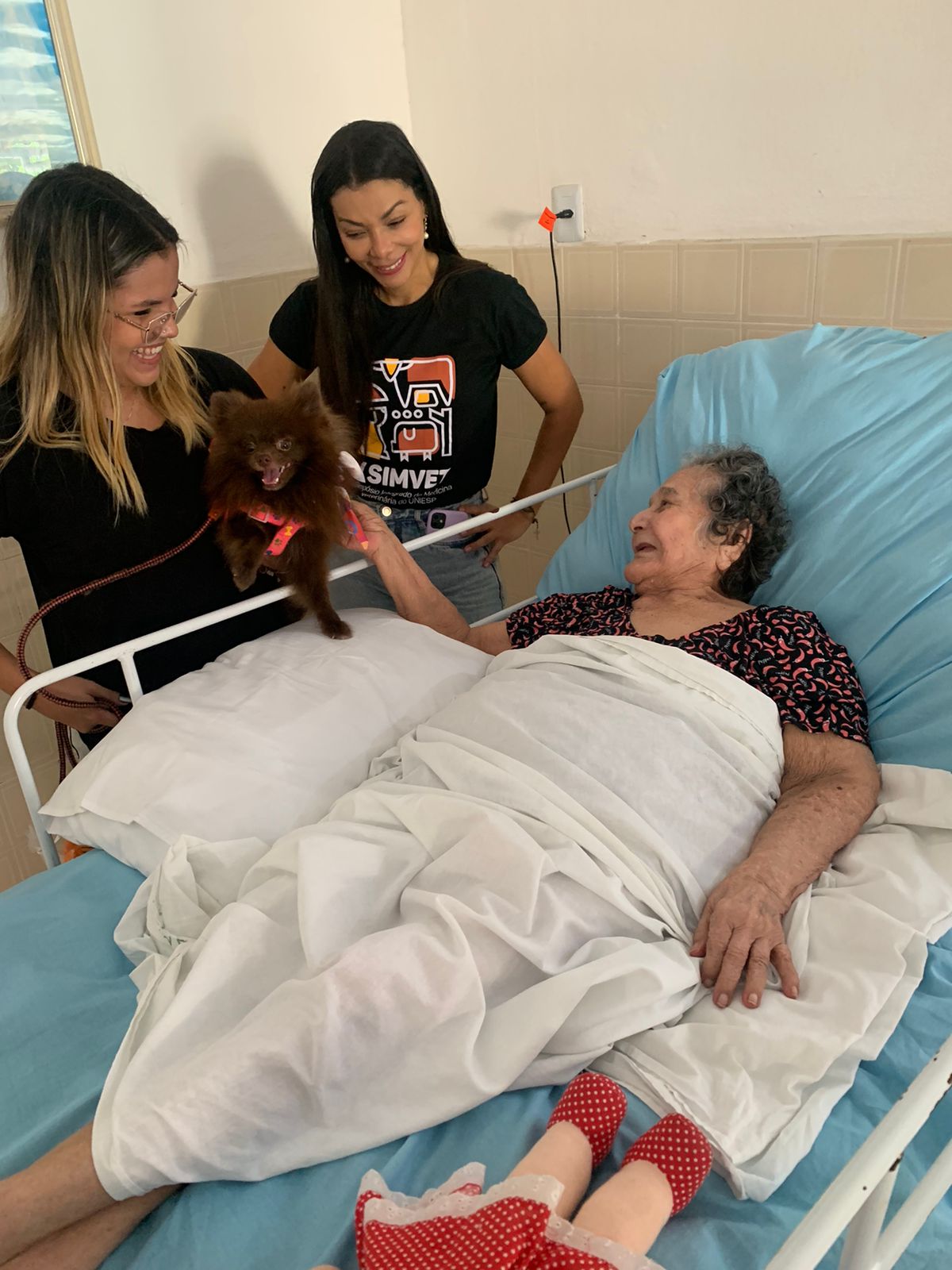 O projeto consiste em levar pets para interagir com pacientes da Clínica de Saúde Integrada (CIS) e para o Instituto de Longa Permanência para Idosos (ILPI) AMEM.