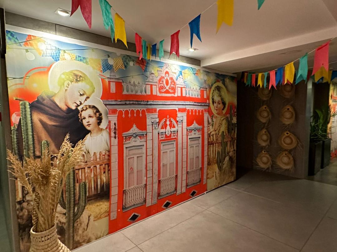 A decoração temática chama atenção. “Esse ano, contamos com a talentosa e encantadora decoração de Luciana Cavalcanti, que trouxe para o hotel adornos e painéis coloridos, estampado com o cenário típico Junino, nos transportando para vivenciar a cultura do mês de São João”, disse Flávia