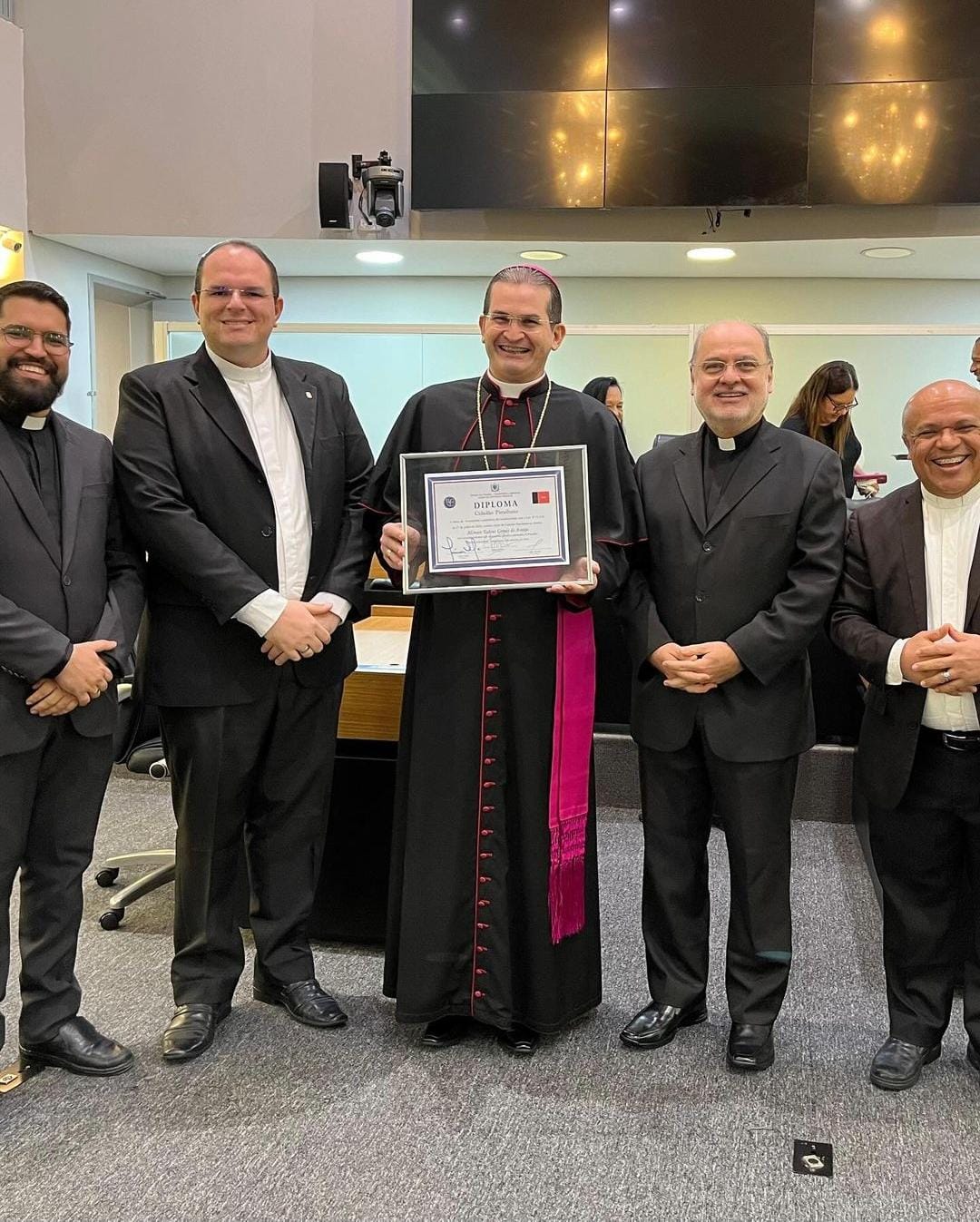 A Assembleia Legislativa da Paraíba (ALPB) realizou sessão solene, na tarde desta segunda-feira (09), proposta pela deputada Cida Ramos, para outorga do Título de Cidadão Paraibano ao bispo titular de “Fata” e auxiliar da Arquidiocese da Paraíba, Alcivan Tadeus Gomes de Araújo, “pelos relevantes serviços prestados ao estado da Paraíba”. O evento aconteceu no Plenário “Deputado José Mariz” e reuniu agentes públicos, autoridades da Igreja Católica, sacerdotes e familiares do homenageado.