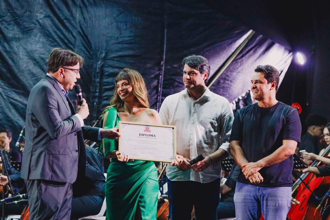 O evento, aberto ao público, contou com apresentações da Orquestra Sinfônica Municipal, da Banda 5 de Agosto e da Companhia Municipal de Dança, ao lado da homenageada pela Câmara Municipal de João Pessoa (CMJP), a cantora e atriz Mayana Neiva.