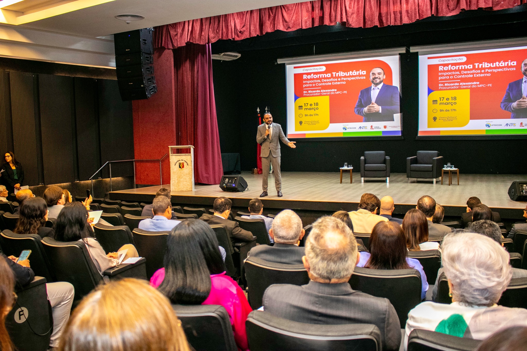 Promovido no TCE-PB com a colaboração da Associação dos Membros dos Tribunais de Contas do Brasil (Atricon), da Associação Nacional dos Tribunais de Contas (ANTC), do Instituto Rui Barbosa (IRB) e do Ministério Público de Contas de Pernambuco, o curso de capacitação que terá prosseguimento nesta quarta-feira (18), versa sobre “Reforma Tributária: Impactos, Desafios e Perspectivas para o Controle Externo”.