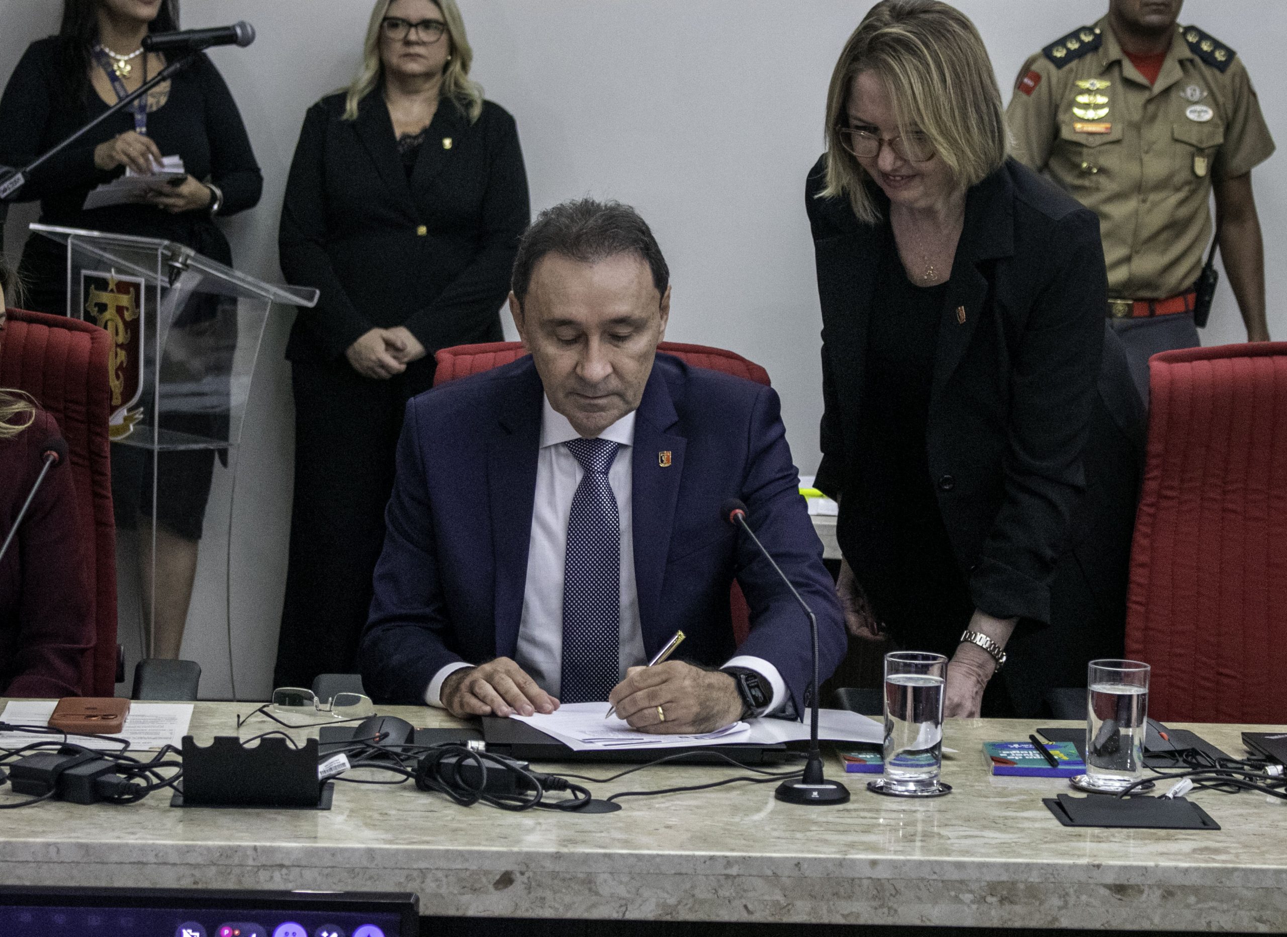 A sessão solene de posse foi conduzida pelo conselheiro Fábio Nogueira, presidente do TCE-PB, e contou com a presença de várias autoridades, entre as quais, o governador do Estado, João Azevêdo, o vice-governador Lucas Ribeiro, o presidente da Câmara dos Deputados, Hugo Motta, o presidente do TJPB, Frederico Coutinho e o presidente da Assembleia Legislativa, deputado Adriano Galdino, que compuseram a mesa, ao lado, também, da procuradora geral do Ministério Público de Contas junto ao TCE, Elvira Samara Pereira de Oliveira.