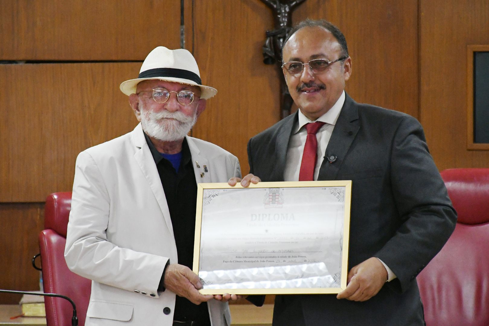 “É com muita honra que estou aqui, nesta tarde, homenageando a figura de Augusto de Moraes, que não precisava deste Título de Cidadania, porque nós, pessoenses, já o tínhamos adotado no coração”, disse Francisco Gilmessias, representante da Academia Paraibana de Letras.